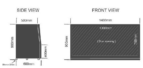 | MSV1400SE | 1400mm | 900mm inc RHS bottom reinforcement. | 600mm |