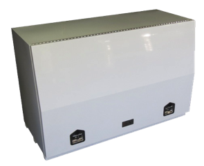 Powdercoated Steel (White) 1.5mm thick 2 x Stainless Steel Drop Locking T Latch waterproof, 2 x Keys, 2 x gas struts, full length Stainless steel piano hinge, reinforcing on lid.